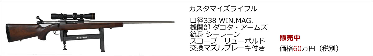 ライフル・散弾銃の販売・通販![]() 新品・中古銃の販売。初心者でも、女性でも安心。丁寧・親切指導。初めての銃選びでも安心! 中古ライフル銃は「集弾率」を提示、オーバーホール渡し。 |